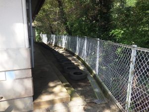 ↑フェンス廻り剪定 作業前 ↑フェンス廻り剪定 作業完了